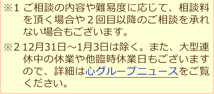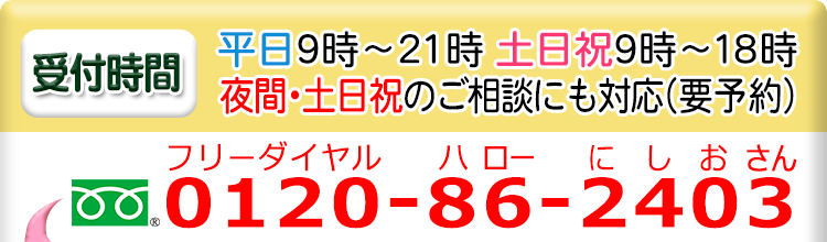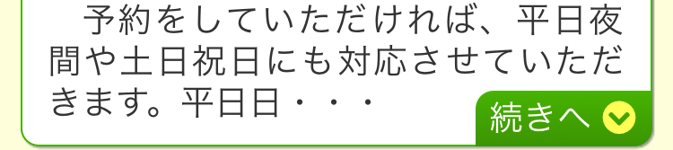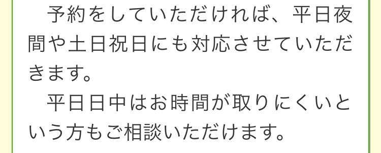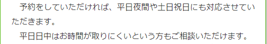 夜間・土日祝の相談も対応します(要予約)