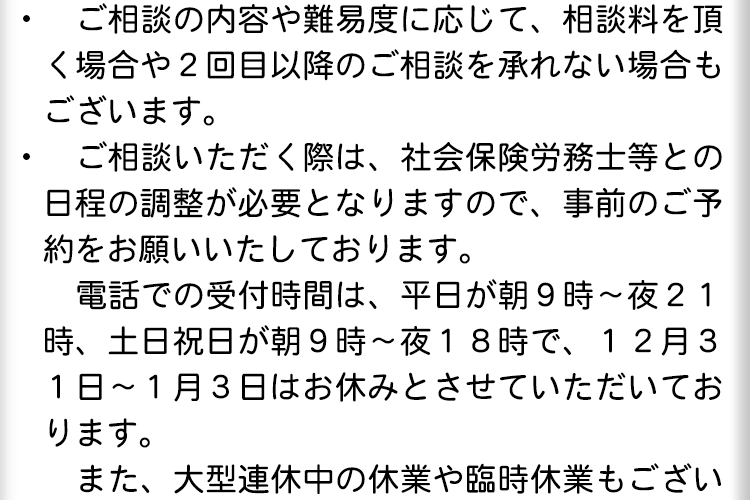 このように、労務問題を社労士に相談・依頼するメリットは色々とありますので、まずは一度、社会保険労務士にご相談ください。