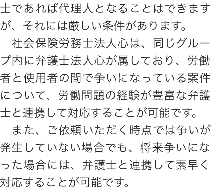 1 グループ企業の弁護士と連携し、紛争性の高い労働問題にも対応可能!